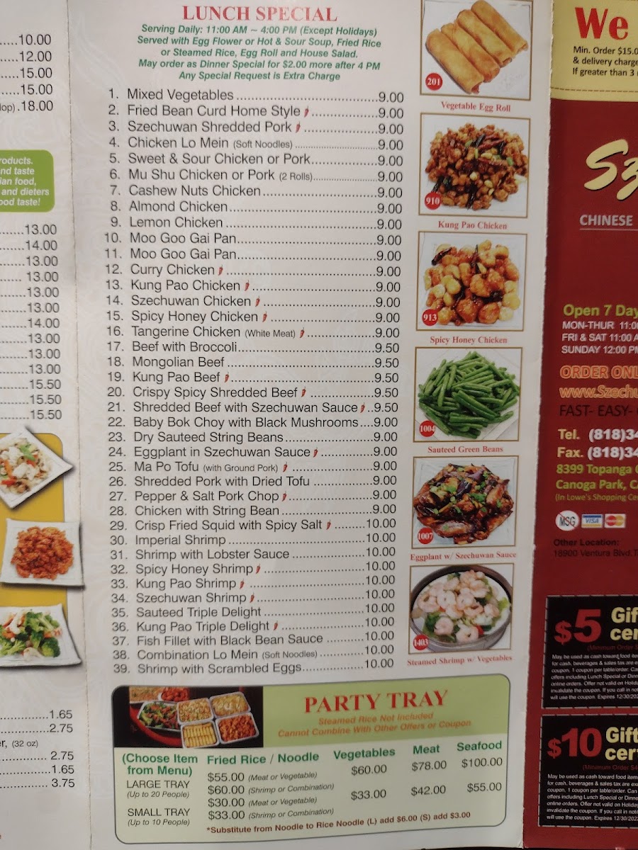 Szechuwan Garden Restaurant Menu